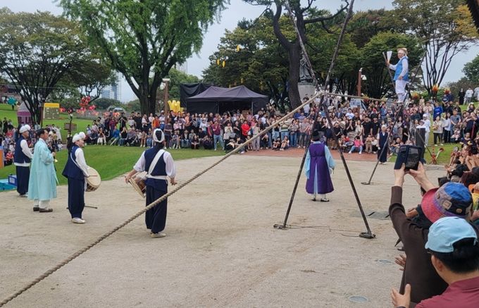 이번 공연은 10월 4일부터 9일까지 1일 1회(추석당일 제외), 총 5회 일정으로 많은 시민과 관광객이 참여해 낮 시간대에 펼쳐지는 공연임에도 관람석이 가득 찰 만큼 뜨거운 열기를 보였다.