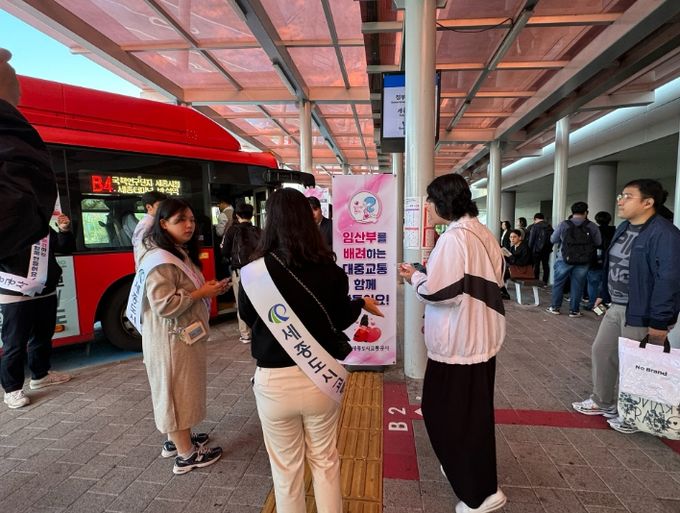 이번 캠페인은 교통공사 임직원들이 버스를 이용하는 시민들을 대상으로 임산부 배려 수칙 포스터를 배부하고, 임산부에 대한 올바른 생활 에티켓을 홍보하며 임신·출산에 대한 긍정적 인식 확산과 저출산 극복분위기 조성을 위해 마련됐다.