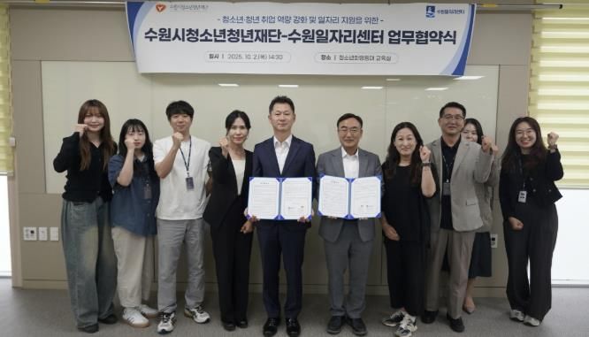 (포탈뉴스통신) 수원시청소년청년재단과 수원일자리센터는 10월 2일, 청소년청년의 취업 역량 강화와 일자리 지원을 위한 업무협약(MOU)을 체결했다.