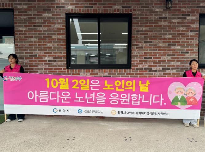 (포탈뉴스통신) 광양시 어린이·사회복지급식관리지원센터는 지난 10월 2일 노인의 날을 맞아 광양시 가가호호주야간보호센터 앞에서 시민과 어르신을 대상으로 캠페인을 전개했다.