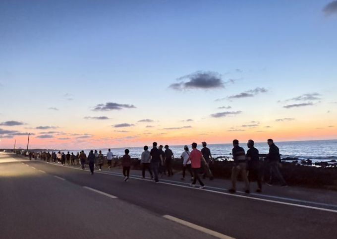 (포탈뉴스통신) 서귀포시는 일상생활 속 1일 7천 보 걷기 활성화를 위하여 11일 새벽 5시 신산리 마을주민들과 함께하는 '힐링 UP! 혼디모영 걸을락(樂)' 신산마을걷기를 운영했다.