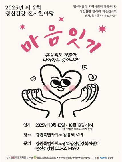 (포탈뉴스통신) 강원특별자치도(도지사 김진태)와 강원특별자치도광역정신건강복지센터는 10월 13일 오전 11시, 강릉역 1층 로비에서 '제2회 정신건강 전시한마당' 개막식을 열고 전시의 시작을 알렸다.