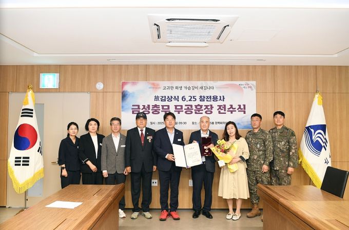 (포탈뉴스통신) 부산 동래구는 지난 13일 6․25전쟁에 참전해 무공을 세운 고(故) 김상식님의 자녀 김형원씨에게 금성충무 무공훈장과 훈장증을 전수했다.