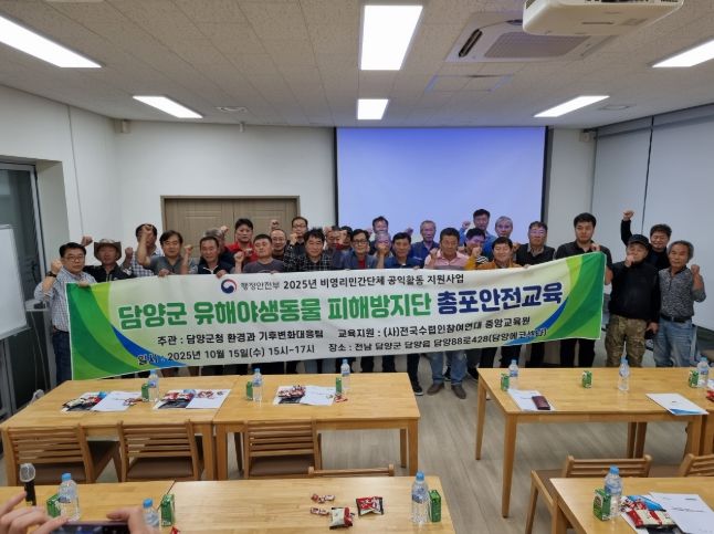 (포탈뉴스통신) 담양군은 지난 15일 에코교육관에서 유해야생동물 기동포획단을 대상으로 포획활동 시 준수사항과 총기사고 예방 등을 위한 안전교육을 진행했다.