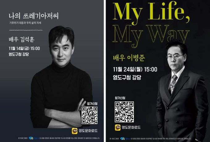 영도구 관계자는 “두 배우가 전하는 삶의 방향에 대한 고민과 기후위기 시대에 필요한 지혜를 얻을 수 있는 뜻깊은 강연에 구민 여러분의 많은 관심과 참여를 바란다”고 밝혔다.