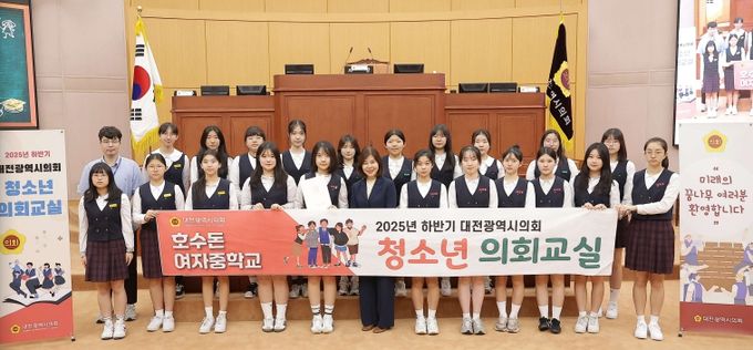 (포탈뉴스통신) 호수돈여자중학교 학생들이 16일, 대전시의회(의장 조원휘)를 방문해 하루 동안 시의회의 운영 과정을 직접 체험하는 뜻깊은 시간을 가졌다.