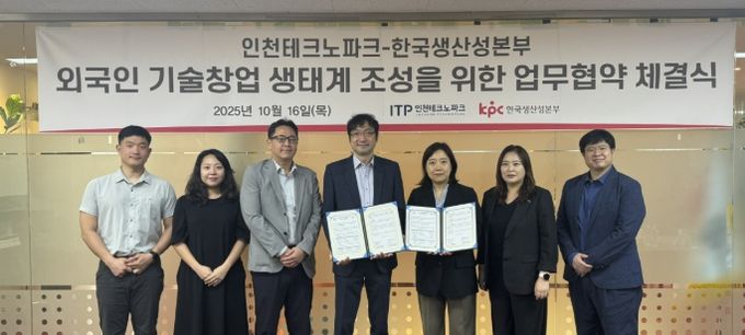 (포탈뉴스통신) 인천테크노파크는 지난 16일 한국생산성본부와 ‘외국인 창업 활성화 및 창업 생태계 조성을 위한 업무협약(MOU)’을 체결했다.