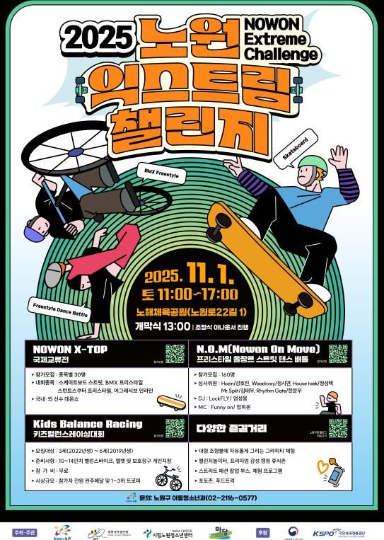 (포탈뉴스통신) 서울 노원구가 다음 달 1일 노해체육공원에서 '2025 노원 익스트림 챌린지(NOWON Extreme Challenge)'를 개최한다고 밝혔다.