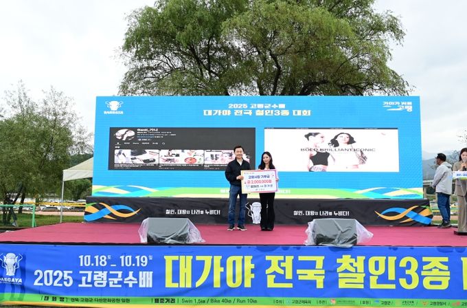 (포탈뉴스통신) 고령군은 지난 19일 다산문화공원 본대회의장에서 열린 ‘2025 고령군수배 대가야 전국 철인3종 대회’ 개막식에서 로페즈 전가은 대표가 고향사랑기부금 200만원을 기탁했다고 전했다.