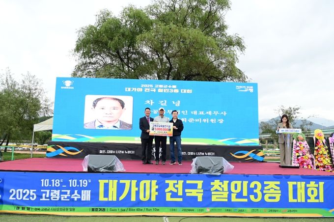 (포탈뉴스통신) 10월 19일 세무법인 팔공 차길녕 대표세무사가 ‘2025 고령군수배 대가야 전국 철인3종 대회’ 개막식에서 지역의 교육 발전과 인재 양성을 위해 사용해 달라며 교육발전기금 500만원을 기탁했다.