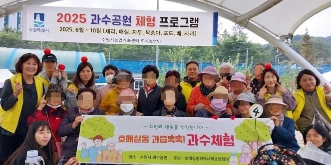 (포탈뉴스통신) 수원시 권선구 호매실동 지역사회보장협의체는 지난 20일, 저소득 홀몸 어르신들을 모시고 과수 체험(사과 따기)에 나섰다. 이번 행사는 관내 홀몸 어르신들의 우울감 등을 예방하고 사회적 관계망을 만들기 위해 진행됐다.