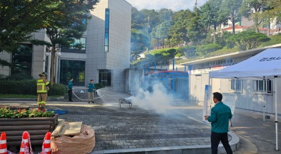 이번 훈련은 전산장비로 인한 화재 발생 상황을 가정하고, 전기화재에 대응할 수 있는 가스식 소화기를 사용하여 화재 발생 초기 단계에서 신속하게 진압하는 능력을 향상하는 데 초점을 맞춰 진행됐다.