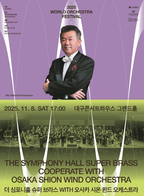 (포탈뉴스통신) 대구콘서트하우스는 오는 11월 8일 오후 5시, 월드오케스트라페스티벌의 일환으로 ‘더 심포니홀 슈퍼 브라스 WITH 오사카 시온 윈드 오케스트라’ 공연을 개최한다.