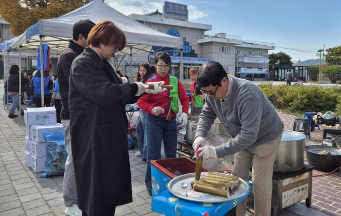 이날 봉사에는 단원 10여 명이 참여해 이른 아침부터 정성껏 준비한 소고기국, 대통밥, 김치 등으로 따뜻한 한 끼 식사를 차렸으며, 시민 100여 명에 대접해 큰 호응을 얻었다.