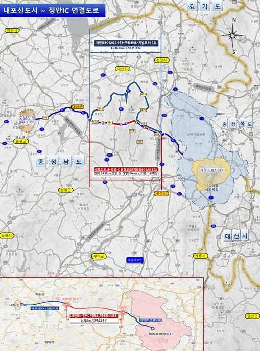 세종시와 내포신도시의 연결도로망 구축은 지역 간의 연계성 확보와 신성장 거점 간의 결속력을 강화하고 지역 동반 성장을 통한 생활 여건 개선 및 균형 발전을 도모할 것으로 기대된다.