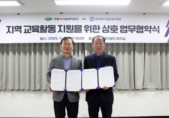 (포탈뉴스통신) 안동시시설관리공단은 11월 3일 공단 회의실에서 경상북도안동교육지원청과 ‘지역 교육활동 지원을 위한 업무협약(MOU)’을 체결했다.