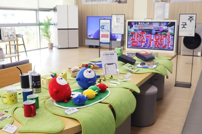 이번 전시는 지역 상품을 홍보하고 판로를 확대하기 위한 ‘메이드인 광주(Made in Gwangju)’ 전시회의 일부다. ‘무등산 스노볼’, ‘오매나 골프용품 세트’, ‘이팝나무 비누’ 등 광주 관광 기념품(굿즈)을 삼성전자 광주사업장에서 생산된 가전과 함께 전시한다.