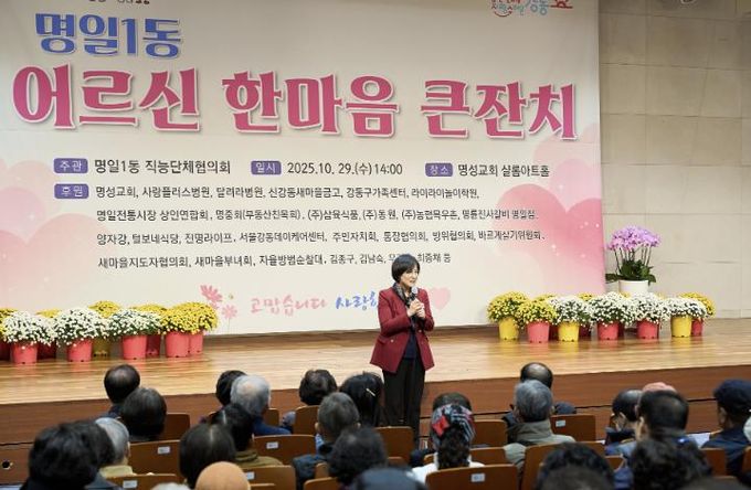 (포탈뉴스통신) 서울 강동구 명일1동은 지난 10월 29일 명성교회 샬롬아트홀에서 관내 어르신 250여 명을 모시고, ‘명일1동 어르신 한마음 큰잔치’를 성황리에 개최했다고 밝혔다.
