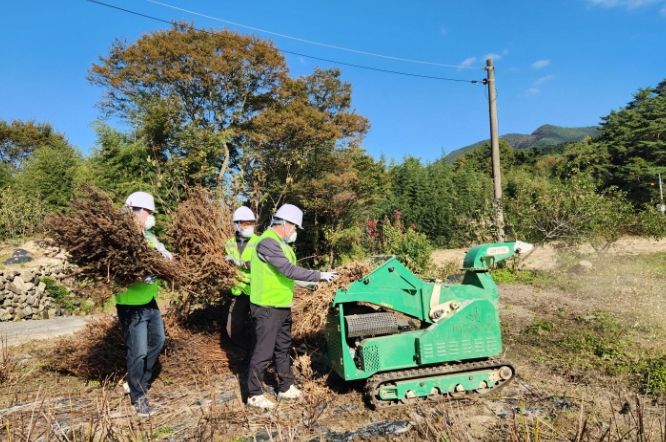 운영 첫날인 3일에는 파쇄지원단원을 대상으로 안전교육과 잔가지 파쇄기 작동 요령 교육이 진행되었으며, 오곡면 명산리 현장에서 실제 파쇄 작업 시연과 장비 운영 요령 등을 공유했다.