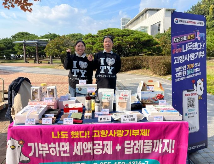 통영시는 홍보부스를 운영하며 QR코드를 통해 고향사랑e음 홈페이지에 접속해 현장에서 바로 기부할 수 있도록 안내했다.