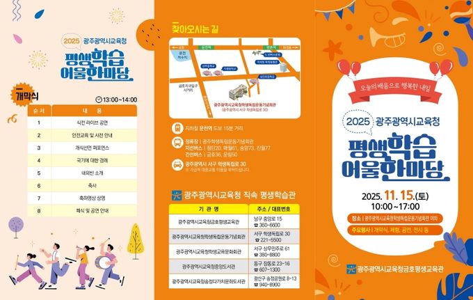 (포탈뉴스통신) 광주시교육청금호평생교육관은 오는 15일 광주시교육청학생독립운동기념회관 야외 일원에서 시민 등을 대상으로 ‘2025 광주광역시교육청 평생학습 어울 한마당’을 개최한다.