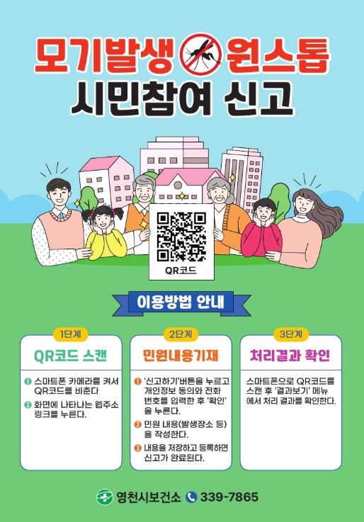 (포탈뉴스통신) 영천시보건소는 QR코드를 활용한 ‘모기발생 원스톱 시민참여 신고’ 시스템을 시범 운영한다고 10일 밝혔다.
