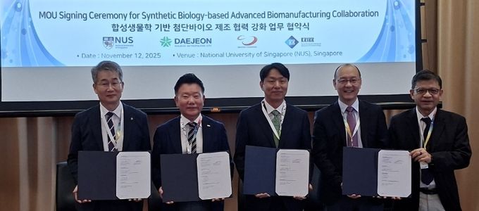 (포탈뉴스통신) 대전시는 합성생물학 분야에서 세계적 선도기관인 싱가포르 국립대(NUS)와 첨단 바이오제조 공동연구 및 국제협력을 위한 업무협약(MOU)을 12일 체결했다.