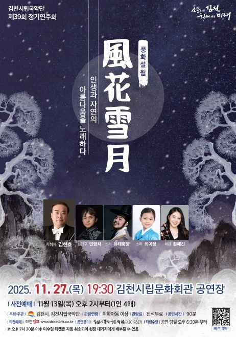 (포탈뉴스통신) 김천시문화예술회관은 11월 27일 목요일 오후 7시 30분에 시립문화회관 공연장에서 시립국악단 제39회 정기연주회를 개최한다.