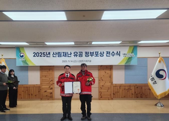 (포탈뉴스통신) 영덕군 산불진화대장 김영수(58)씨가 14일 산림청에서 열린 ‘2025년 산림재난 유공자 포상식’에서 대통령 표창을 받았다.