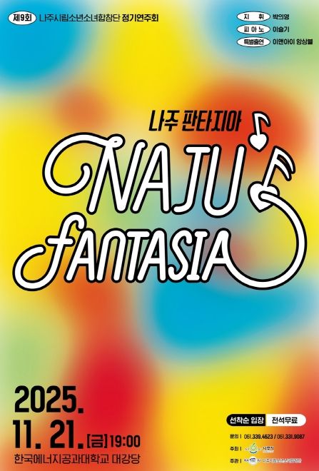 나주시는 오는 21일 오후 7시 한국에너지공과대학교 강당에서 나주시립소년소녀합창단 정기연주회 ‘나주 판타지아’를 개최한다고 14일 밝혔다.