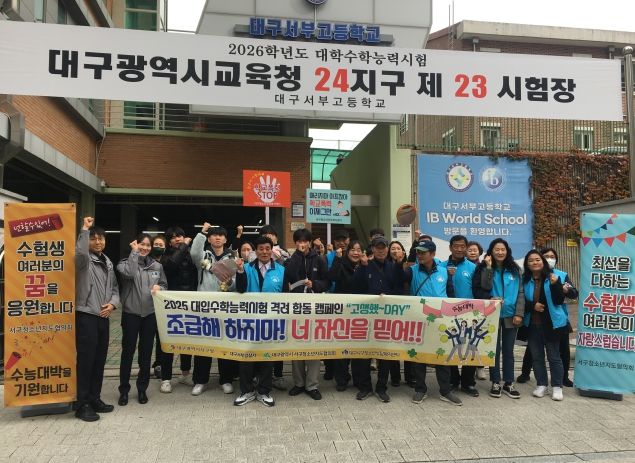 (포탈뉴스통신) 대구 서구 청소년지도협의회(회장 황만태)는 지난 12일, 서부고등학교 정문에서 학생들의 수능 예비 소집일 시간에 맞춰 수험생 응원 및 선도·보호 합동 캠페인을 실시했다.