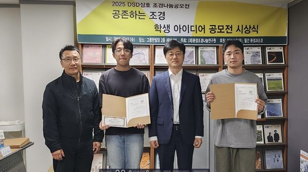 16일 전남대에 따르면, 조경학과 박상욱 교수(조경식재설계연구실) 지도를 받은 학생팀이 ‘2025 DSD삼호 조경나눔공모전’에서 대상을 수상했다. 수상팀은 이도헌·김성곤·이경은·김수호(조경학과), 임율의(조경학과 대학원) 학생으로 구성됐다.