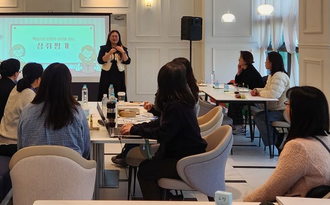 첫 회 연수는 ‘학습자 주도성을 키우는 성취평가 수업‧평가 디자인’을 주제로 진행됐으며 참여 교원들은 학교생활기록부 기반 교수학습계획–수업–평가–기록의 일체화 과정을 이해하고, 성취 기준 분석 실습과 학습자 주도 수업·평가 사례를 공유했다.