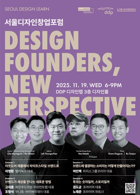 (포탈뉴스통신) 서울디자인재단은 11월 19일 오후 6시, DDP 디자인랩 3층 디자인홀에서 '2025 서울디자인창업포럼(Seoul Design Startup Forum 2025)'을 개최한다. 이번 행사는 국내 유일의 디자인 창업 전문 포럼으로, ‘디자인이 창업의 미래를 바라보는 관점, 감각이 전략이 되는 순간’을 주제로 디자인 창업가들이 자신만의 시선으로 시장을 읽고, 감각을 전략으로 전환하여 브랜드를 성장시켜온 실제 사례를 공유한다.