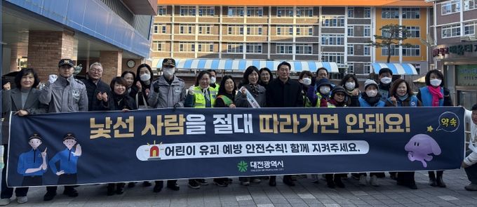(포탈뉴스통신) 대전시는 18일 대전복수초등학교에서 어린이 약취․유인 예방을 위한 기관 합동 캠페인을 진행했다.