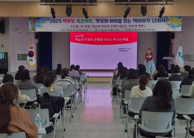 (포탈뉴스통신) 경상북도경산교육지원청은 11월 20일 학생교육지원관 강당에서 개최한 ‘2025 부모와 아이를 잇는 책 이야기’ 북콘서트 행사를 성황리에 마무리했다고 21일 밝혔다. 경산 관내 유·초·중·고 학부모 약 80여 명이 참석하여 미래 교육에 대한 높은 관심을 보였다.