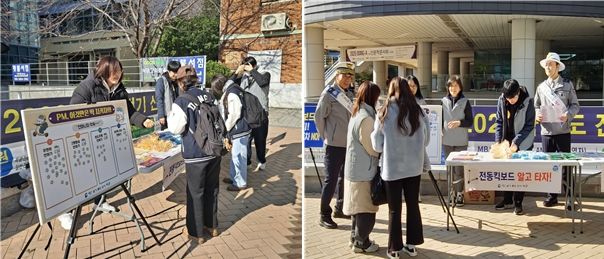 현장에서는 천마니 캐릭터와 함께하는 스티커 붙이기 참여 이벤트, 꽝 없는 추억의 뽑기를 통해 PM 안전 수칙 리플렛과 홍보물품 배부, 무면허 운행 금지, 보도 주행 금지, 2인 탑승 금지 등 주요 안전 수칙 보드 전시 등 학생 참여형 홍보가 펼쳐졌다.