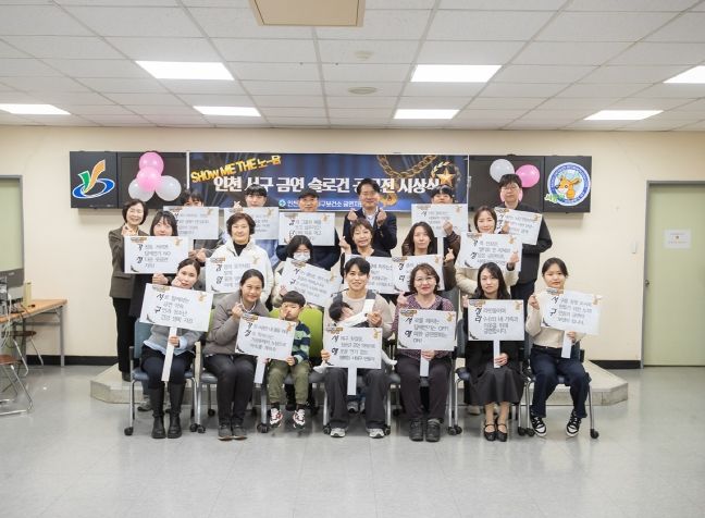 (포탈뉴스통신) 인천 서구는 지난 19일 서구보건소에서 인천 서구 금연 슬로건 공모전 ‘SHOW ME THE 노담’의 시상식을 개최했다.