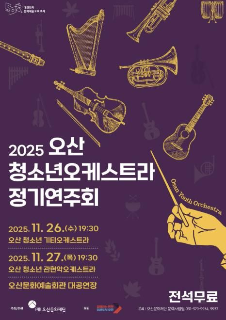 오산문화재단 관계자는 “이번 정기연주회는 단원들이 1년간 쌓아온 실력을 선보이는 뜻깊은 무대”라며 “학부모와 시민들이 함께 문화예술을 향유하고 청소년들의 성장을 응원하는 자리가 되길 바란다”고 밝혔다.