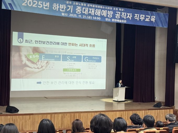 (포탈뉴스통신) 전남 구례군은 지난 21일 문화예술회관에서 광주 지방노동청 광역중대재해수사과장을 초청해 ‘2025년도 하반기 중대재해 예방 공직자 직무교육’을 실시했다고 밝혔다.