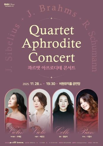 (포탈뉴스통신) 비원뮤직홀에서는 BMH 클래식 시리즈로 정통 클래식 공연을 심도 있게 감상할 수 있는 콰르텟 아프로디테 콘서트를 개최해 지역민들에게 고품격 문화를 선사한다.