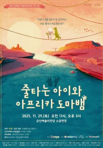 (포탈뉴스통신) 예술경영센터가 주최하고 군산시가 주관하는 전통 연희극 ‘줄 타는 아이와 아프리카 도마뱀’이 오는 29일 오전 11시와 오후 3시에 군산예술의전당 소공연장에서 선보인다.