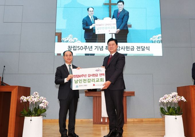 이날 전달식은 이영훈 구청장을 비롯해 성도 500여 명이 참석한 가운데 진행됐으며, 교회는 창립 50주년 감사 예배 중 당일 감사헌금 전액을 지역사회 기부금으로 전달했다.