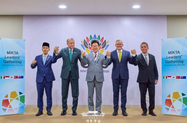 (포탈뉴스통신) 주요 20개국(G20) 정상회의 참석을 위해 남아프리카공화국을 방문한 이재명 대통령은22일(현지시간) 오후 우리나라, 멕시코, 인도네시아, 튀르키예, 호주 5개국으로 구성된 믹타(MIKTA) 회원국 정상들과 회동했다.