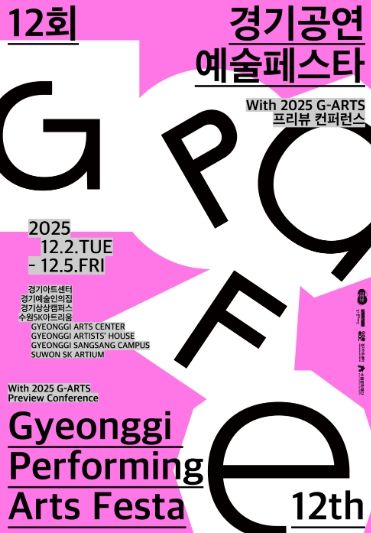 (포탈뉴스통신) 경기문화재단은 경기도 수원 일대에서 제12회 경기공연예술페스타를 개최한다. 페스타는 2025년 12월 2일부터 5일까지 경기 예술인의 집, 경기아트센터, 경기상상캠퍼스, 수원SK아트리움 등에서 진행되며, 베스트콜렉션, 쇼케이스 데이, 공동 창·제작 쇼케이스, 피치세션, 토크세션, 워크숍 등 다양한 프로그램을 통해 경기 공연예술 생태계의 흐름과 성과를 한눈에 보여줄 예정이다. 또한 경기아트센터 주최 ‘2025 G-ARTS 프리뷰 컨퍼런스’가 동시 개최되며, 보다 풍성한 전문 교류의 장을 마련한다.