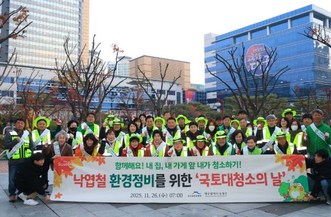 (포탈뉴스통신) 대구 수성구는 26일 대구광역시 교육청 인근에서 겨울철 낙엽 정비를 위한 ‘국토대청소의 날’ 행사를 개최했다.