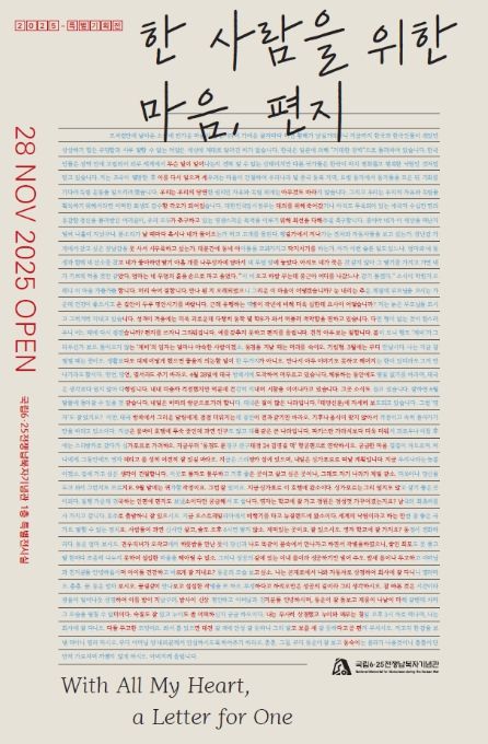 (포탈뉴스통신) 통일부 국립6·25전쟁납북자기념관은 개관 8주년을 맞이하여 11월 28일 오후, 경기도 파주시 소재 기념관 1층 특별전시실에서 '한 사람을 위한 마음, 편지'를 주제로 특별전시 개막식을 개최한다.