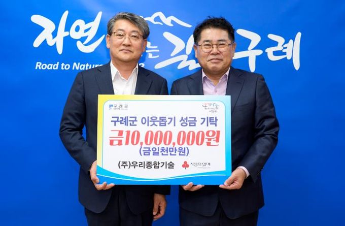 (포탈뉴스통신) 전남 구례군은 지난 26일 ㈜우리종합기술이 지역 내 취약계층의 따뜻한 겨울나기를 돕기 위해 성금 1천만 원을 기탁했다고 밝혔다.