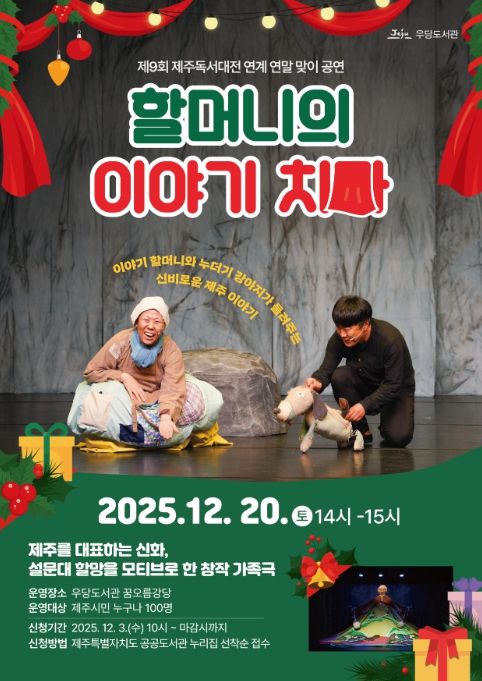 (포탈뉴스통신) 제주시 우당도서관은 연말을 맞아 12월 20일 오후 2시 연극 ‘할머니의 이야기 치마’ 공연을 개최한다.