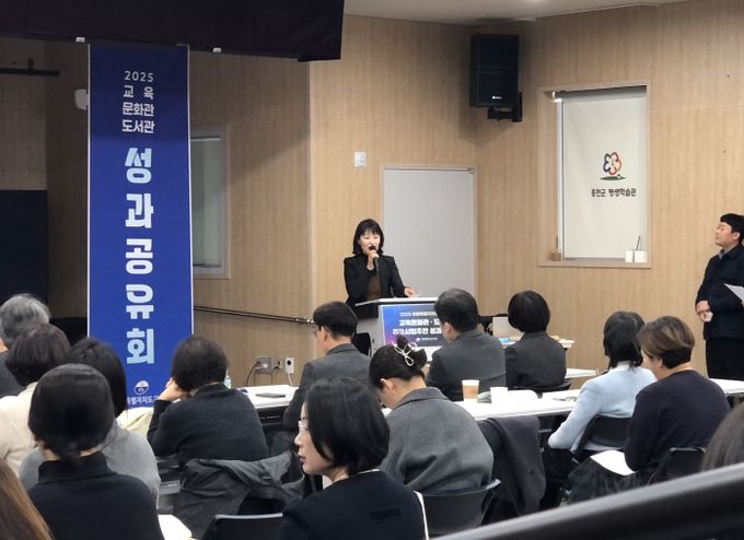 올해 성과공유회는 지난해에 이어 두 번째로 열리는 행사로, 교육문화관(도서관) 직원 90여 명이 참석한 가운데 주요사업 담당자 6명이 △2025 우수도서관 선정 사례 △학교연계 프로그램 △디지털·문해교육 확대 운영 △지역사회 연계 프로그램 등의 우수사례를 발표했다.